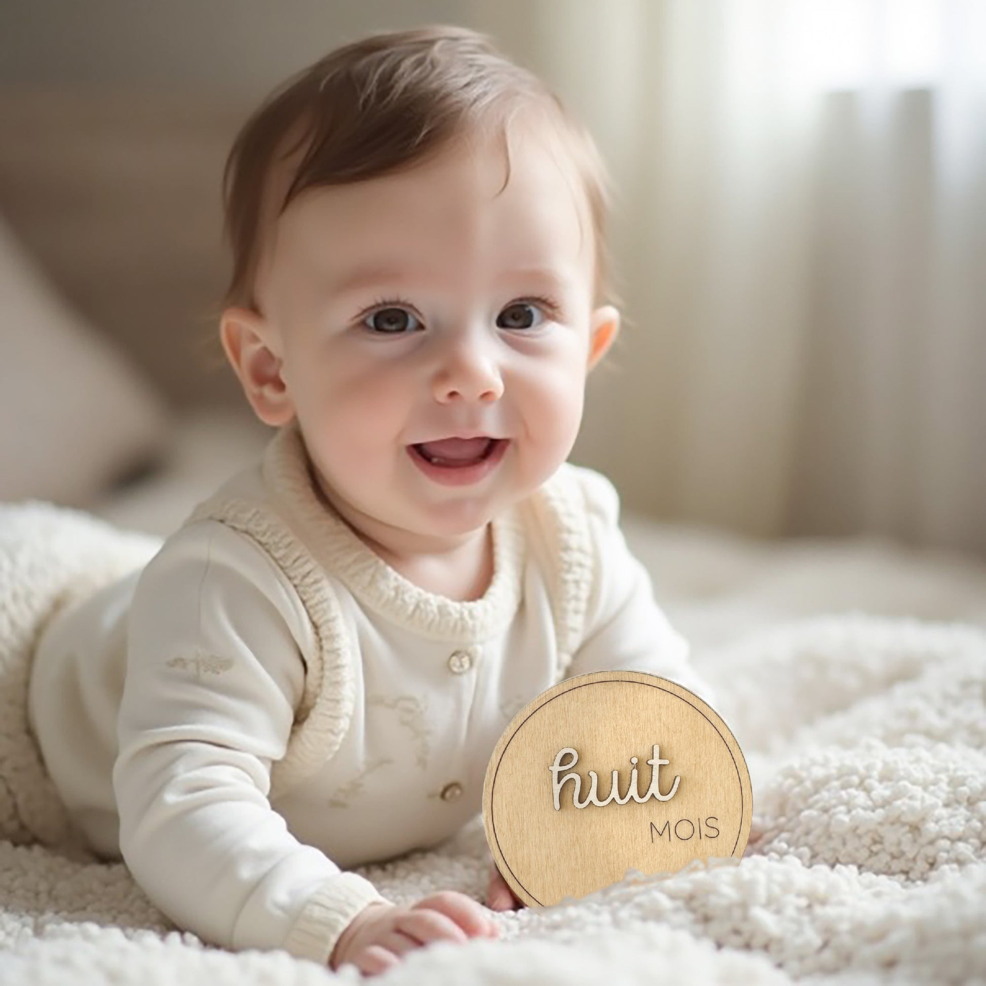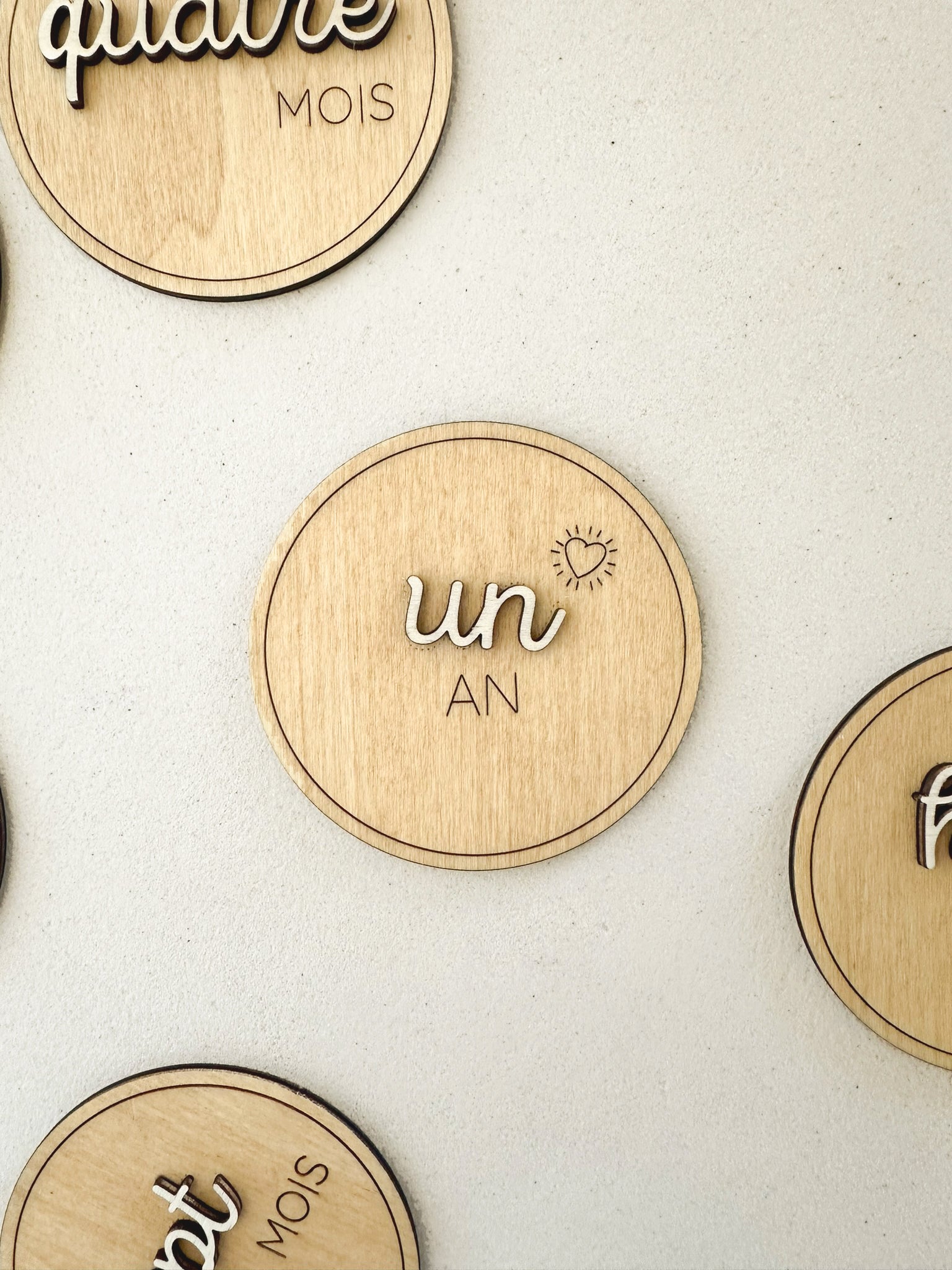 Chaque carte ronde est délicatement ornée d'une branche d'olivier, symbole de paix et d'amour, et personnalisé avec le prénom de votre petit trésor. Un souvenir intemporel aussi unique que votre enfant. Prenez en photos l’évolution de votre bébé et gardez des souvenirs précieux de ces moments. Le cadeau parfait pour une naissance.