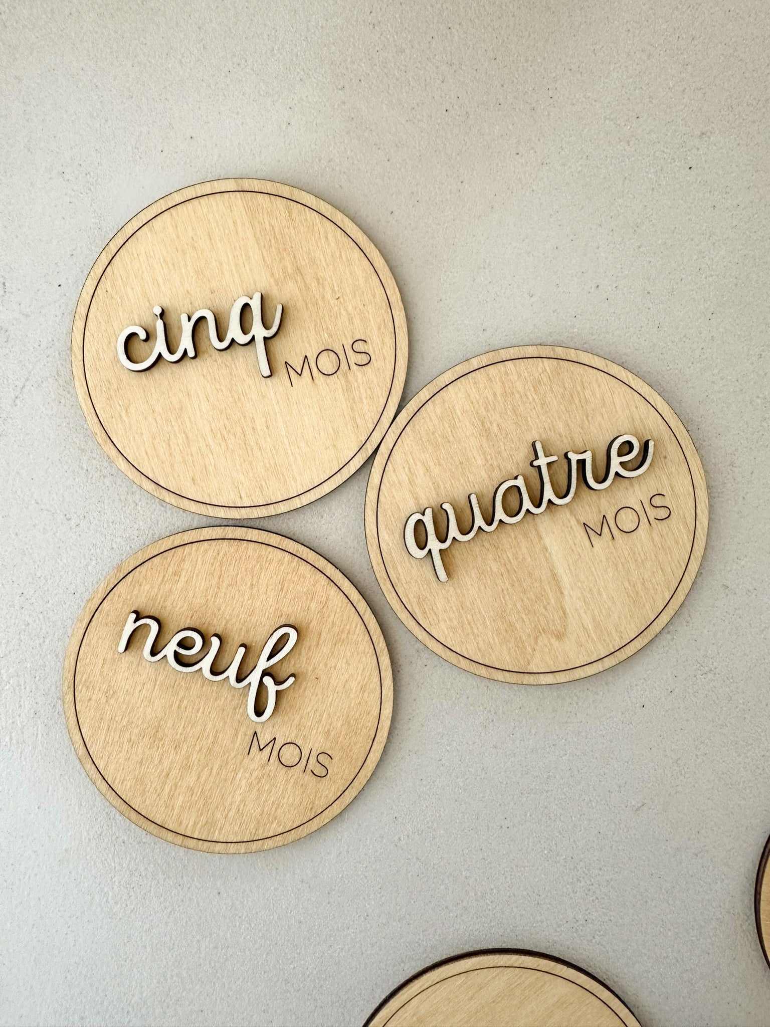 Cartes étapes personnalisées, douze instants précieux gravés dans le bois.